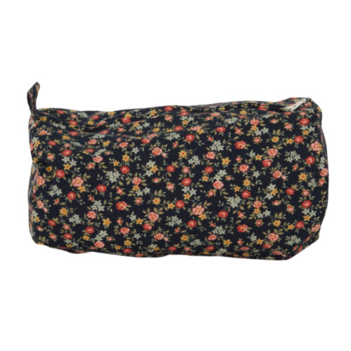 Étui à crayon ou sac à cosmétique cylindrique en coton format moyen Bleu foncé avec fleurs – Baluchon