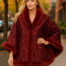 Poncho à paillettes métalliques avec fausse fourrure taille unique – Rouge
