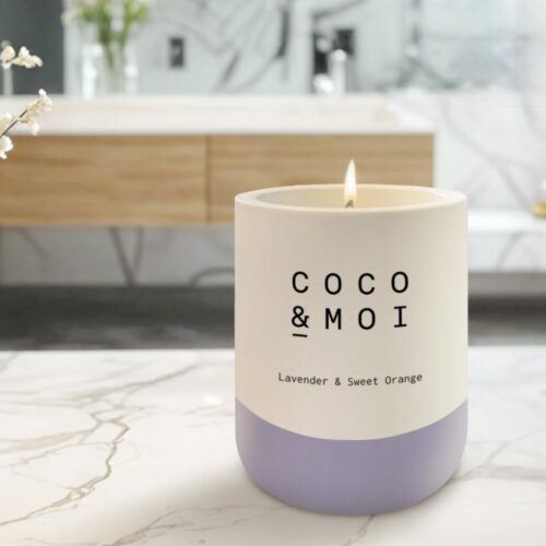 Chandelle avec mèche de bois lavande et orange douce – Coco et Moi