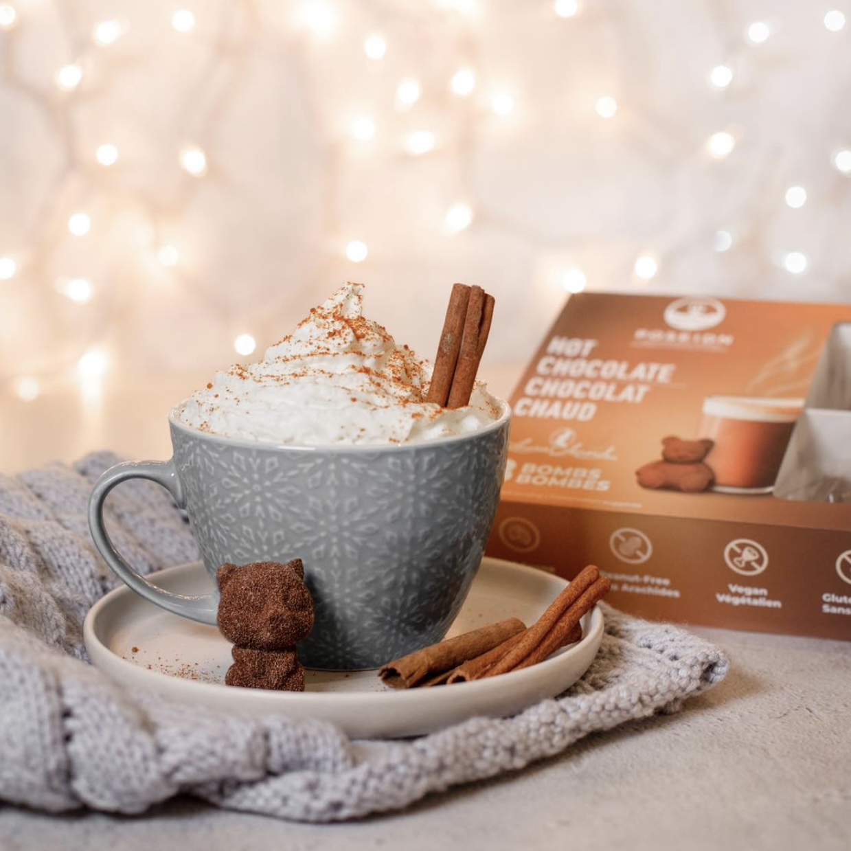 Comme si le chocolat chaud n’était pas assez parfait ! Plongez nos adorables bombes de chocolats chauds dans une tasse de lait chaud pour le transformer en une tasse fumante de délicieux chocolat chaud. Les enfants adorent tremper nos mignonnes bombes, et même les adultes qui l’adorent aussi. Notre chocolat chaud est riche en goût et bien équilibré pour la douceur. Quelle jolie façon de se détendre !